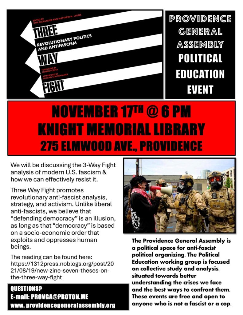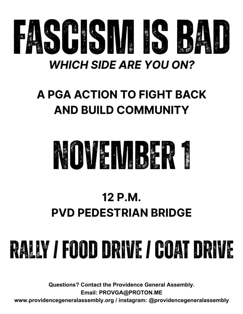Participants of the Providence General Assembly gathered with other progressive and leftist organizations for an action to fight back and build community. Food and coats were redistributed to Mathewson St. Church and Better Lives RI.